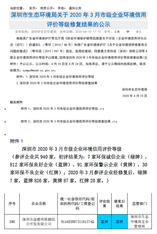 上一篇:关于深圳市金骏玮资源综合开发有限公司扩建项目环境保护措施竣工的公告