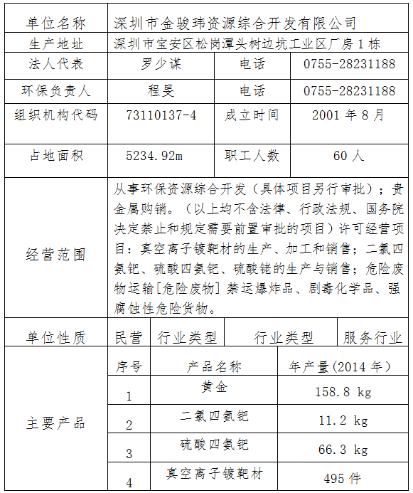 深圳市金骏玮资源综合开发有限公司环境信息
