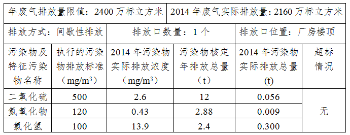 (2)废气排污信息情况表